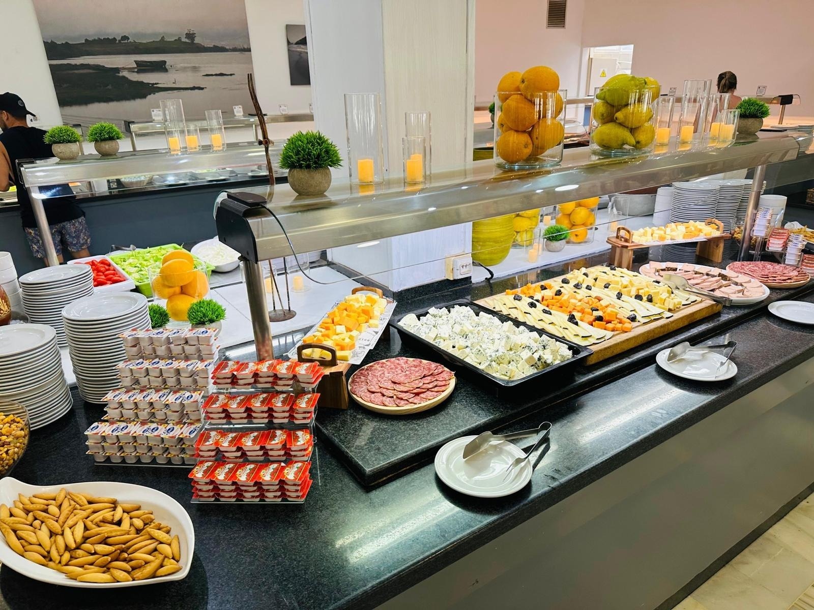 En el corazón de nuestro hotel, el Buffet Alborán te espera con un festín de sabores durante todo el año, ofreciéndote un servicio completo para tu Alojamiento y Desayuno, Media Pensión y Pensión Completa. Disfruta de una amplia variedad de platos que deleitarán tu paladar.